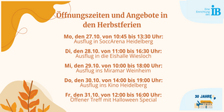 Anmeldungen für die Angebote und Ausflüge können entweder im Downloadbereich heruntergeladen oder im Jugendtreff abgeholt werden. Für den Offenen Treff mit Halloween Special ist keine Anmeldung notwendig!