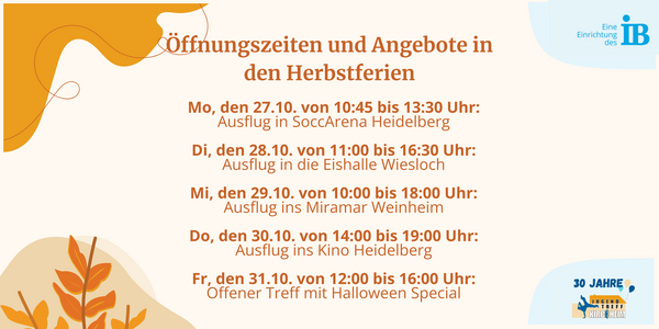 Öffnungszeiten und Angebote in den Herbstferien 2025